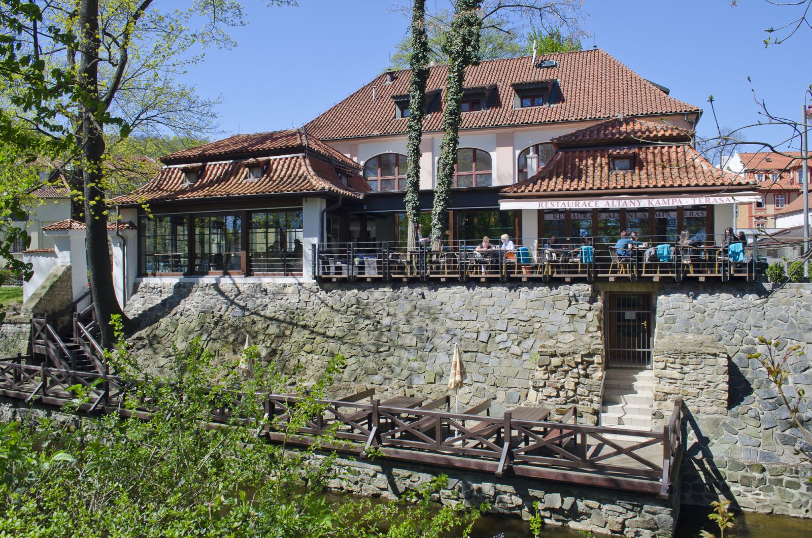 Restaurace v samém centru Prahy s dobrou dostupností a parkovacím místem přímo před restaurací. Hosté ocení romantický výhled na Čertovku a park Kampa. Je to jen pár minut chůze ke Karlovu mostu, Národnímu divadlu nebo na lanovou dráhu na Petřín.
