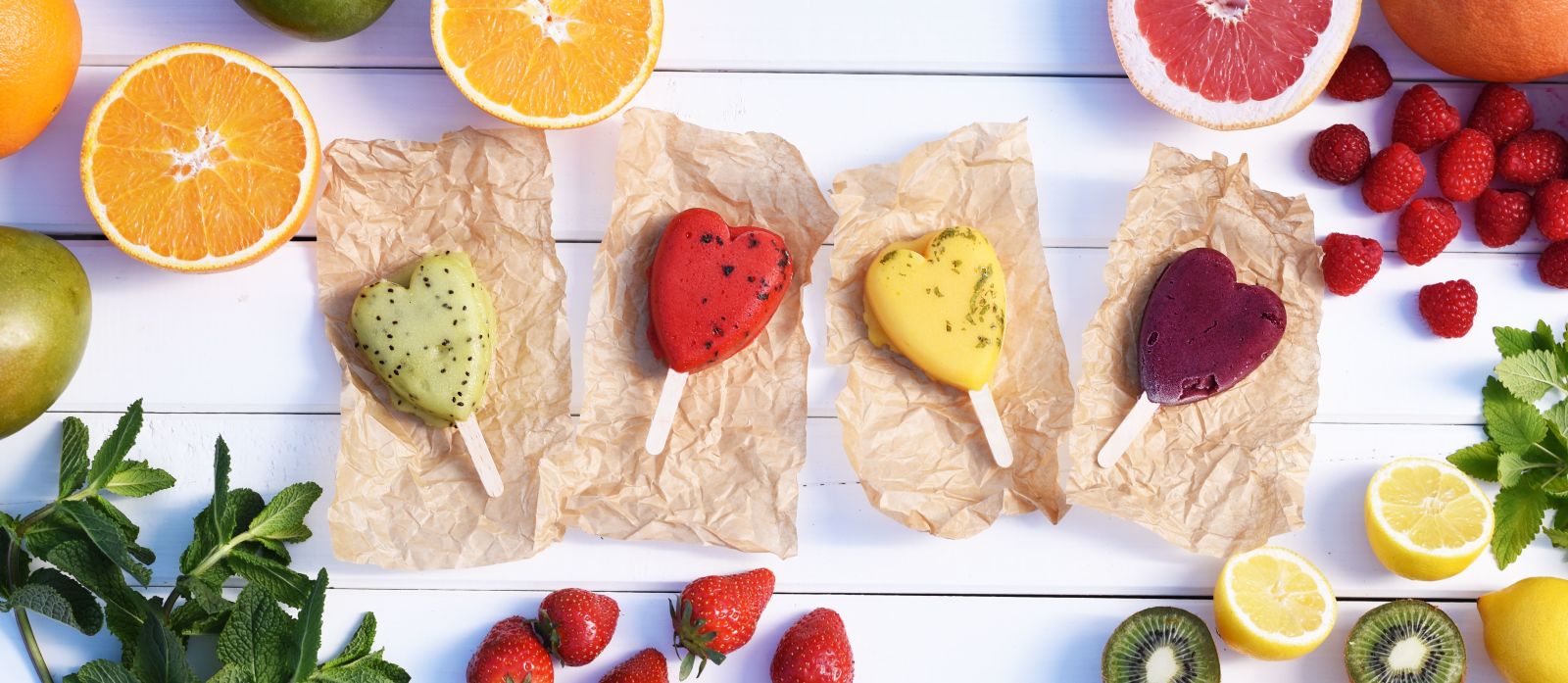 Ručně vyráběné nanuky z ovoce, bylinek, čisté vody a přírodního nerafinovaného cukru
