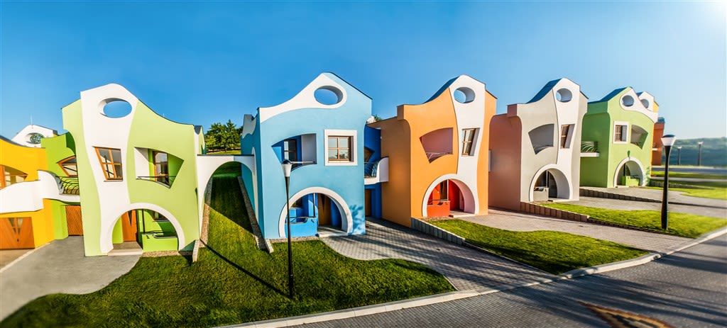 Svou výraznou sytou hravou barevností a netradičním hmotovým řešením vytváří řada 15 sklepních objektů zaříznutých do svahu Staré Hory novou nepřehlédnutelnou dominantu Velkých Pavlovic.